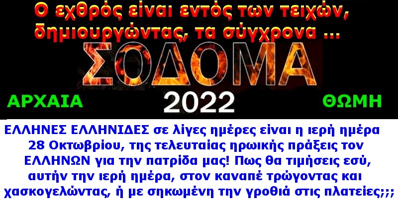 Οι ανταγωνιστές μας, οι οποίοι είναι όλοι Σιωνιστές, για τους οποίους η μοίρα της Ελλάδας είναι το μεγάλο «παιχνίδι τους», αυτή η άπληστη «ύαινα» που, μέσω της διαφθοράς και του χαφιεδισμού, «έρποντας» περιφέρεται στον Πλανήτη και «χτυπάει» ό,τι βρίσκει αδύναμο ή ετοιμοθάνατο, όμοσαν τον εξαφανισμό μας, συμμάχησαν με τα καθάρματα και τους ολετήρες και απάτριδες πολιτικάντιδες και με σατανικά μέτρα προσπαθούν να μας αφανίσουν «στοχεύοντας» κατ’ ευθείαν στην «καρδιά» την Πατρίδα μας, η καταστροφή της οποίας έχει γίνει εθνικό τους σχέδιο.
